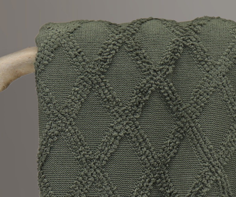 Olive Green Throw Blanket Australia: Olive wattle knitted cotton throw.
